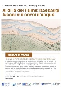 In occasione della Giornata Nazionale del Paesaggio 2026, sabato 14 marzo a Potenza si terrà l’iniziativa dal titolo “Al di là del fiume: paesaggi lucani sui corsi d’acqua”, organizzata dall’Archivio di Stato di Potenza e la Soprintendenza ABAP della Basilicata.